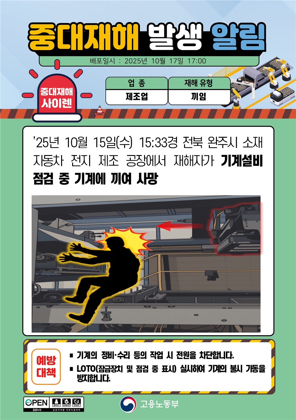 25³â 10¿ù 15ÀÏ(¼ö) ±â°è¼³ºñ Á¡°Ë Áß ±â°è¿¡ ³¢¿© »ç¸Á