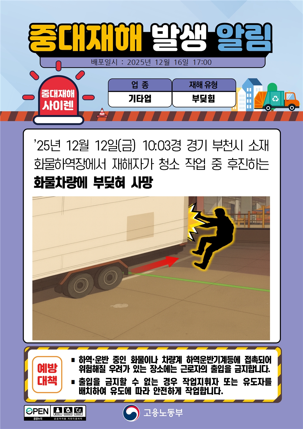 25³â 12¿ù 12ÀÏ(±Ý) û¼Ò ÀÛ¾÷ Áß ÈÄÁøÇÏ´Â È­¹°Â÷·®¿¡ ºÎµúÇô »ç¸Á