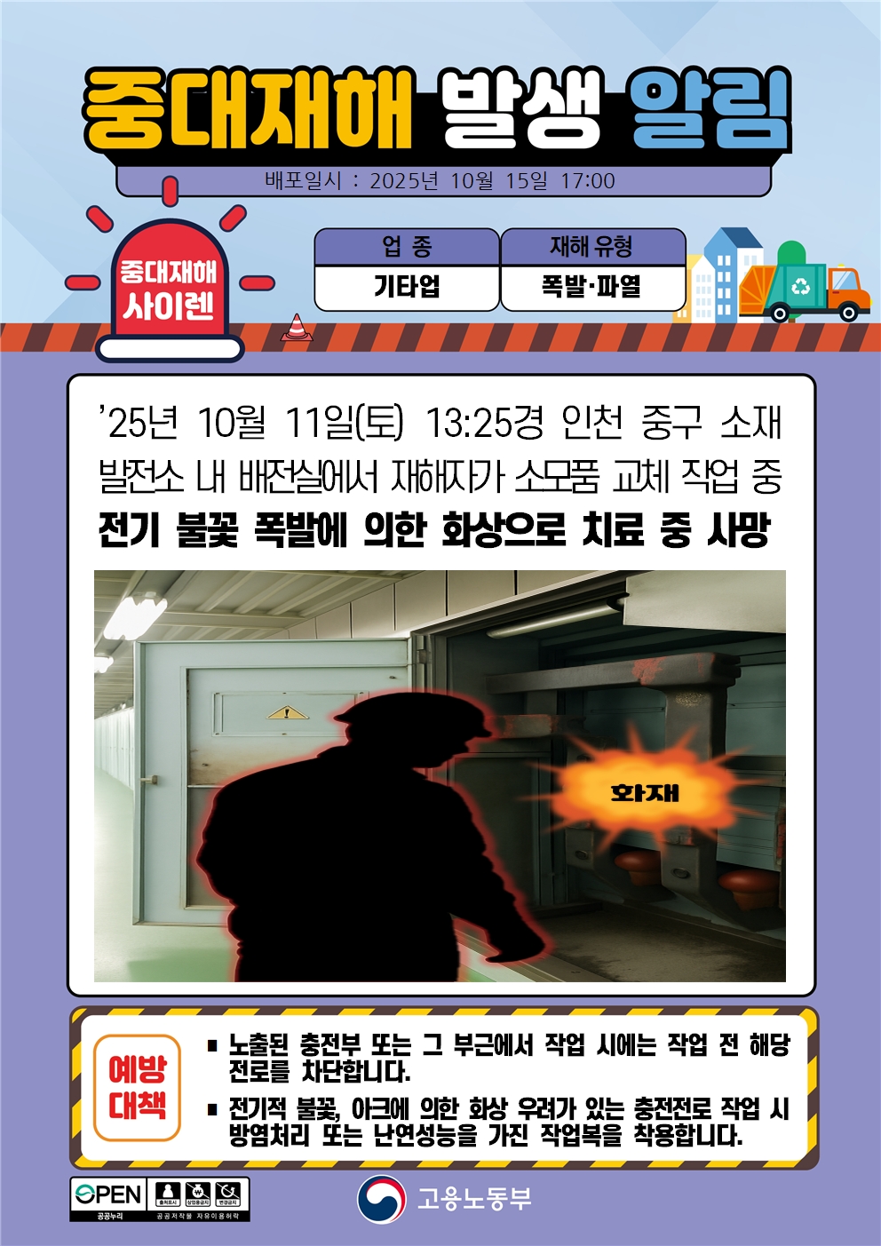 25³â 10¿ù 11ÀÏ(Åä) Àü±â ºÒ²É Æø¹ß¿¡ ÀÇÇÑ È­»óÀ¸·Î Ä¡·á Áß »ç¸Á